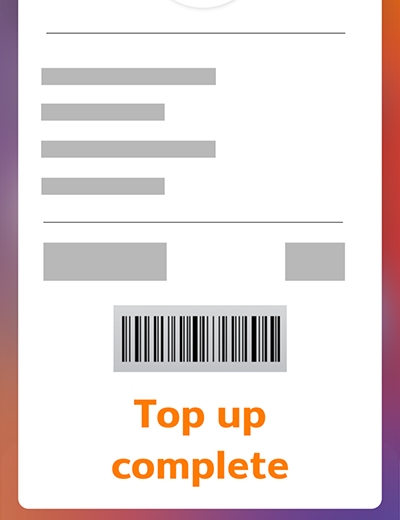 Step 5 : You will get the receipt and the Top up complete