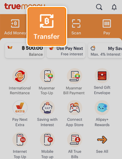 Click on “TRANSFER” icon