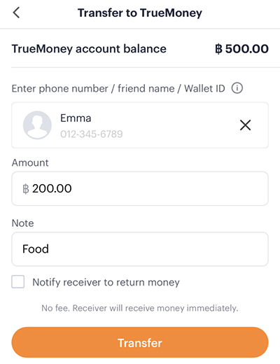 receiver and transfer amount.