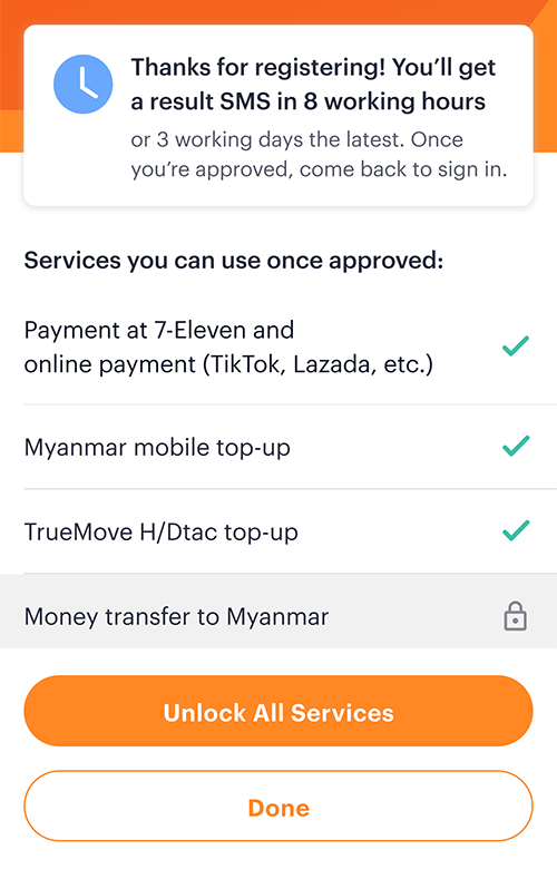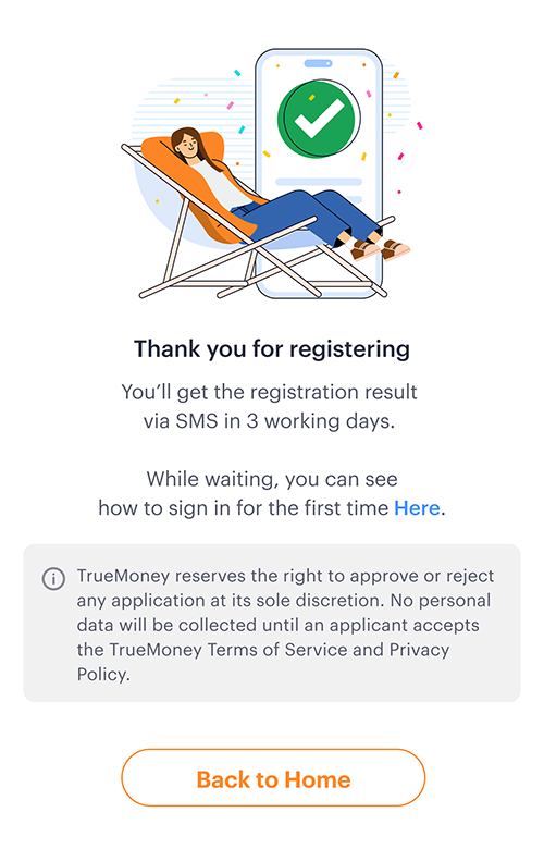 14. Registration successful. You should get approval within 24 hour via SMS.