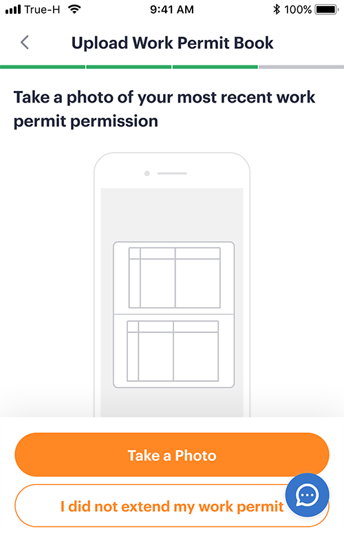 7. Click “take a photo” if you have extended page. If not having, click “I didn’t extend work permit”.
