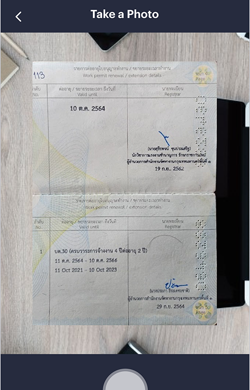 5. Take photo of your work permit (Both sides of page and no blurry)