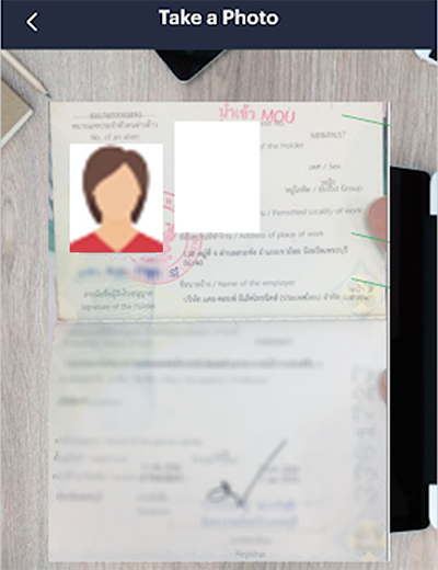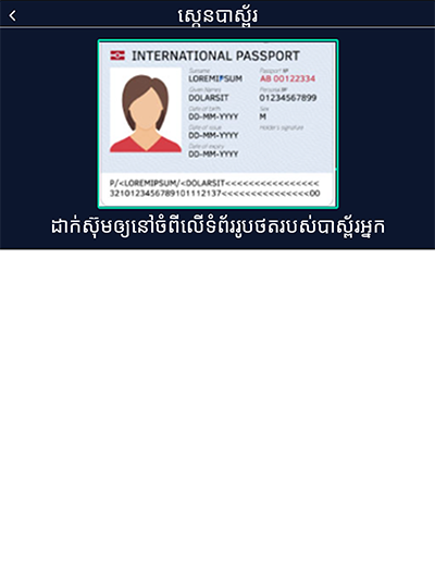 6. ស្កេនលិខិតឆ្លងដែនរបស់អ្នកអោយចំប្រអប់ពណ៌ប៉ៃតង