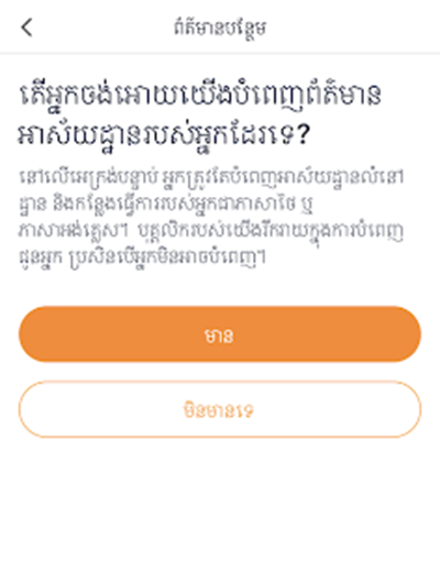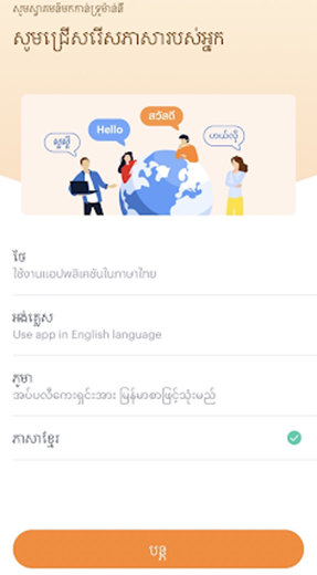 1. ជ្រើសរើសភាសា ‘’ភាសាខ្មែរ’’ រួចចុចប៉ូតុង ‘’បន្ដ’’