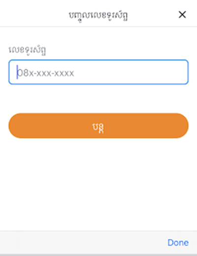2. បំពេញលេខទូរស័ព្ទរបស់អ្នក