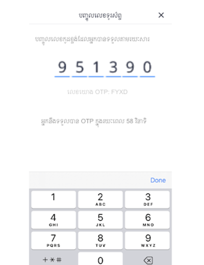 4. រងចាំ និង បញ្ចូលលេខកូដ OTP