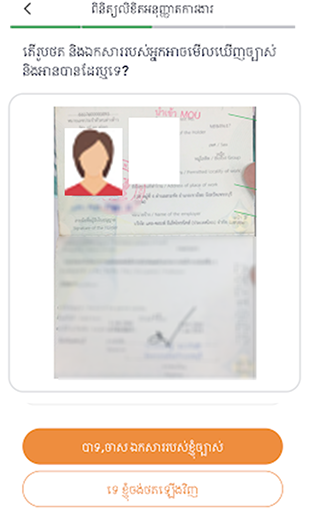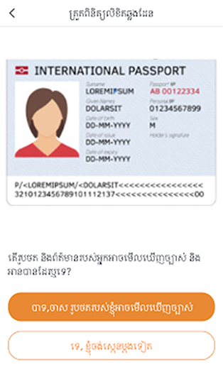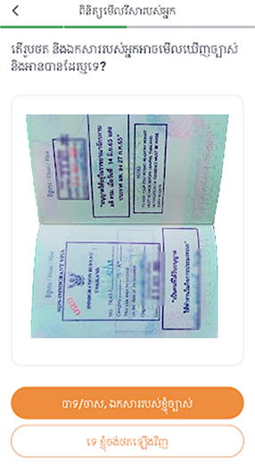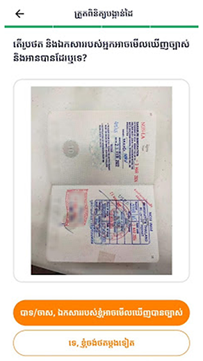 7. ពិនិត្យលិខិតឆ្លងដែន ហើយចុចប៉ូតុង “បាទ, ចាស រូបថតរបស់ខ្ញុំអាចមើលឃើញច្បាស់”“