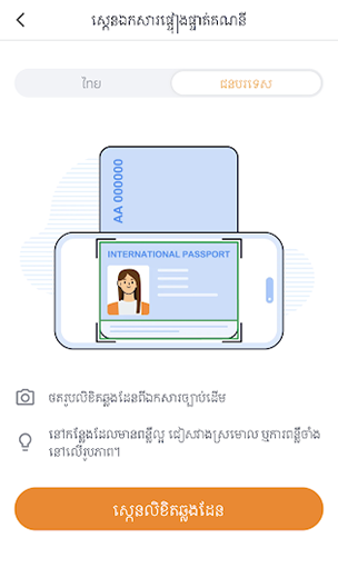 5. ចុចប៉ូតុង ‘’ជនបរទេស’’ ហើយចុចប៉ូតុង ‘’ស្កេនលិខិតឆ្លងដែន’’