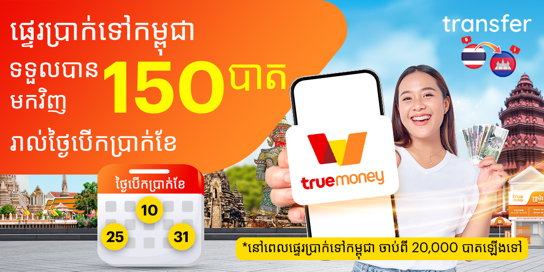 ផ្ទេរប្រាក់លើកទី 1 តាមរយៈ Truemoney Wallet ទទួលបានប្រាក់ត្រលប់មកវិញ ...