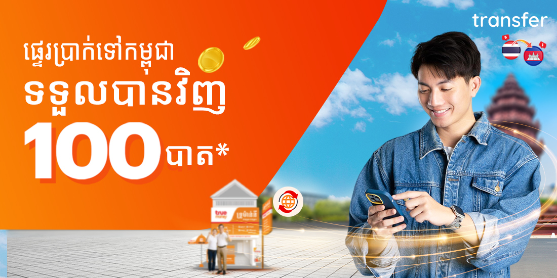 ផ្ទេរប្រាក់លើកទី 1 តាមរយៈ Truemoney Wallet ទទួលបានប្រាក់ត្រលប់មកវិញ 100 បាត (អ្នកប្រើប្រាស់ជាជនជាតិខ្មែរ)