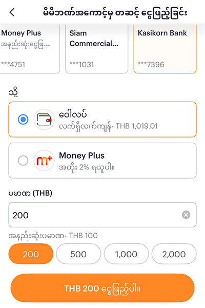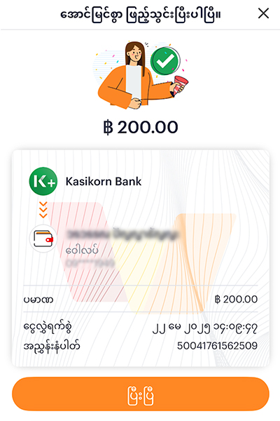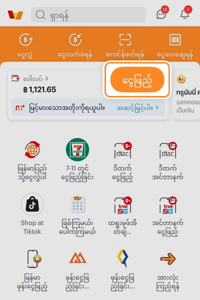 ဝင်ပြီးလိမ္မော်ရောင်ခလုတ် ‘ငွေဖြည့်’ ကိုရွေးချယ်ပါ
