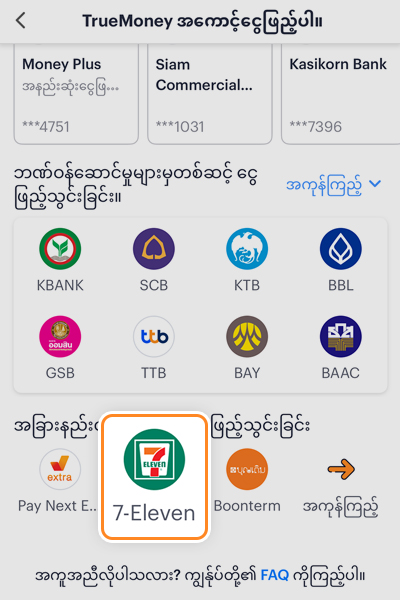 2. ‘7-Eleven‘ မှငွေဖြည့်မည်ကိုရွေးချယ်ပါ