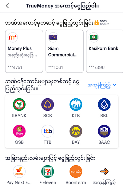 Truemoney (ထရူးမန်းနီး)အကောင့်ထဲသို့ ငွေဖြည့်နည်း
