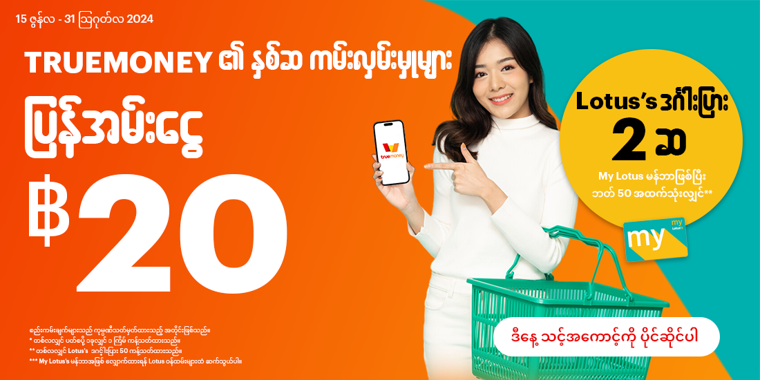 TrueMoneyကိုအရင်ဆုံးလျောက်ထားပါ 100 THB ကူပွန်ရယူပါ စည်းမျဉ်းနှင့်စည်းကမ်းများ ...