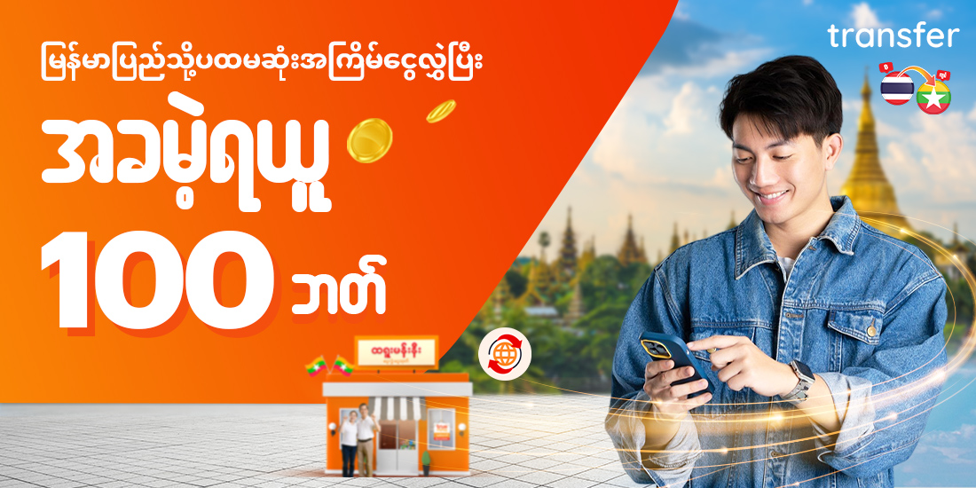 Truemoney မှ တစ်ဆင့်ပထမဆုံးအကြိမ်ငွေလွှဲပြီးပြန်အမ်းငွေ 100 ဘတ် (မြန်မာအသုံးပြုသူများသာ)