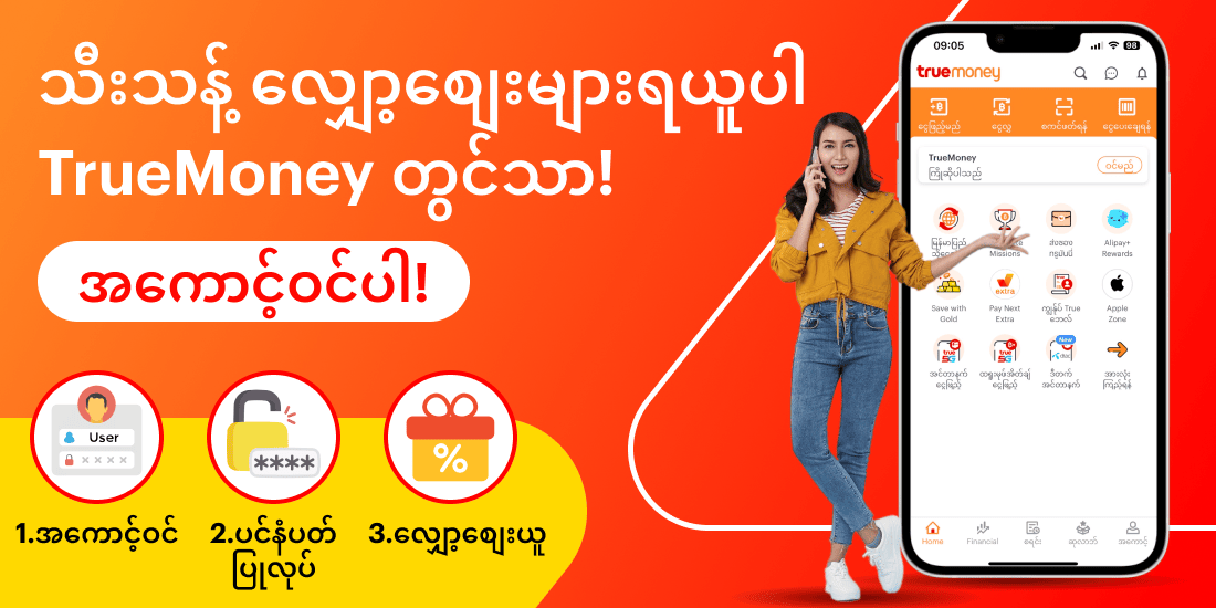 TrueMoney ဖြင့်ပထမဆုံးအကြိမ်တွင် ဘာလုပ်ရမလဲ